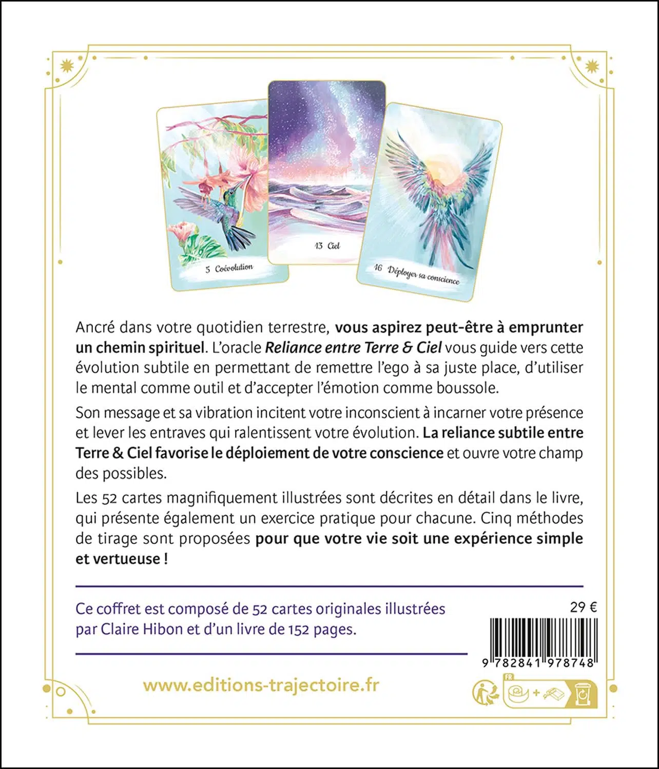 Ancré dans votre quotidien terrestre, vous aspirez peut-être à emprunter un chemin spirituel. L'Oracle Reliance entre Terre & Ciel vous guide vers cette évolution subtile en permettant de remettre l'ego à sa juste place, d'utiliser le mental comme outil et d'accepter l'émotion comme boussole.