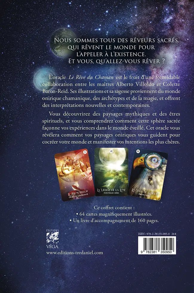 L'Oracle du Rêve du chamane est le fruit d'une formidable collaboration entre les maîtres Alberto Villoldo et Colette Baron-Reid. Ses illustrations et sa sagesse proviennent du monde onirique chamanique des archétypes et de la magie, tout en offrant des interprétations nouvelles et contemporaines.