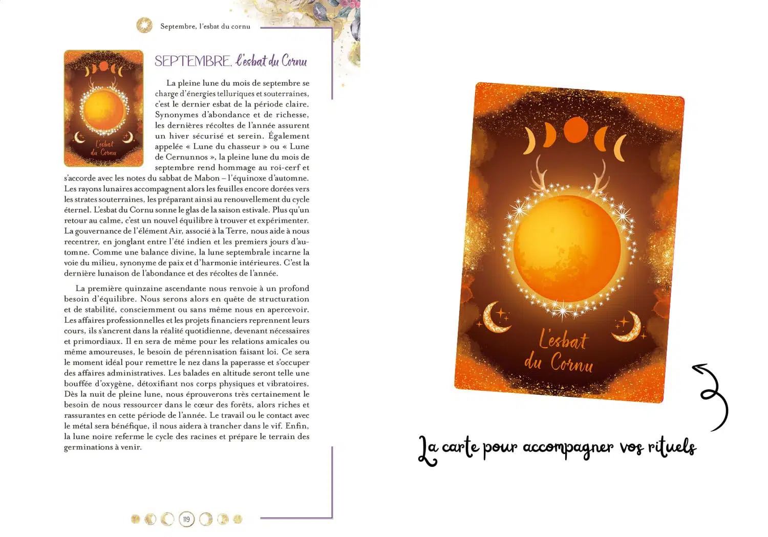 Chacune des treize nuits de pleine lune – ou esbat – est un rendez-vous spirituel, lors duquel l’on rend grâce à la déesse Luna-Séléné, la maîtresse lunaire. Rituels célestes, prières astrales, incantations et magie ancestrales engagent vers une mystique échappée belle.