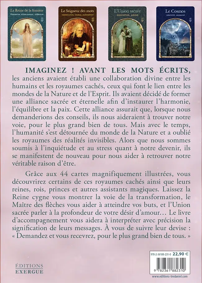 Avant les mots écrits, les anciens avaient établi une collaboration divine entre les humains et les royaumes cachés, ceux qui font le lien entre les mondes de la Nature et de l’Esprit. Ils avaient décidé de former une alliance sacrée et éternelle afin d’instaurer l’harmonie, l’équilibre et la paix. Cette alliance assurait que, lorsque nous demanderions des conseils, ils nous aideraient à trouver notre voie, pour le plus grand bien de tous.