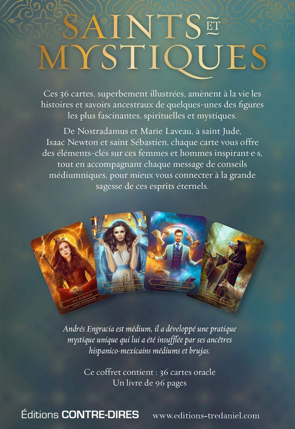 De Nostradamus et Marie Laveau à saint Jude, Isaac Newton et saint Sébastien, chaque carte vous offre des éléments-clés sur ces femmes et hommes inspirant·e·s, tout en accompagnant chaque message de conseils médiumniques, pour mieux vous connecter à la grande sagesse de ces esprits éternels.