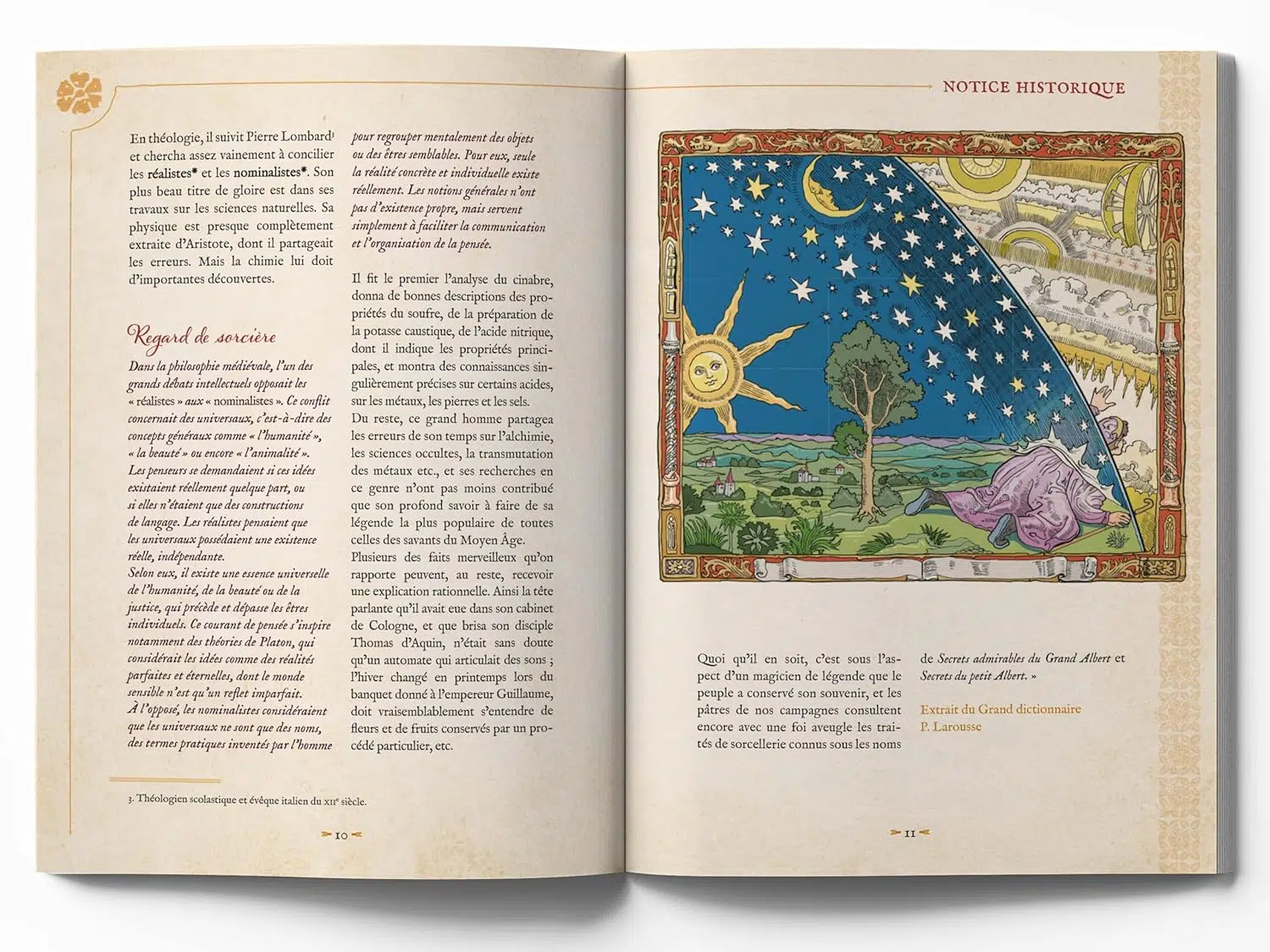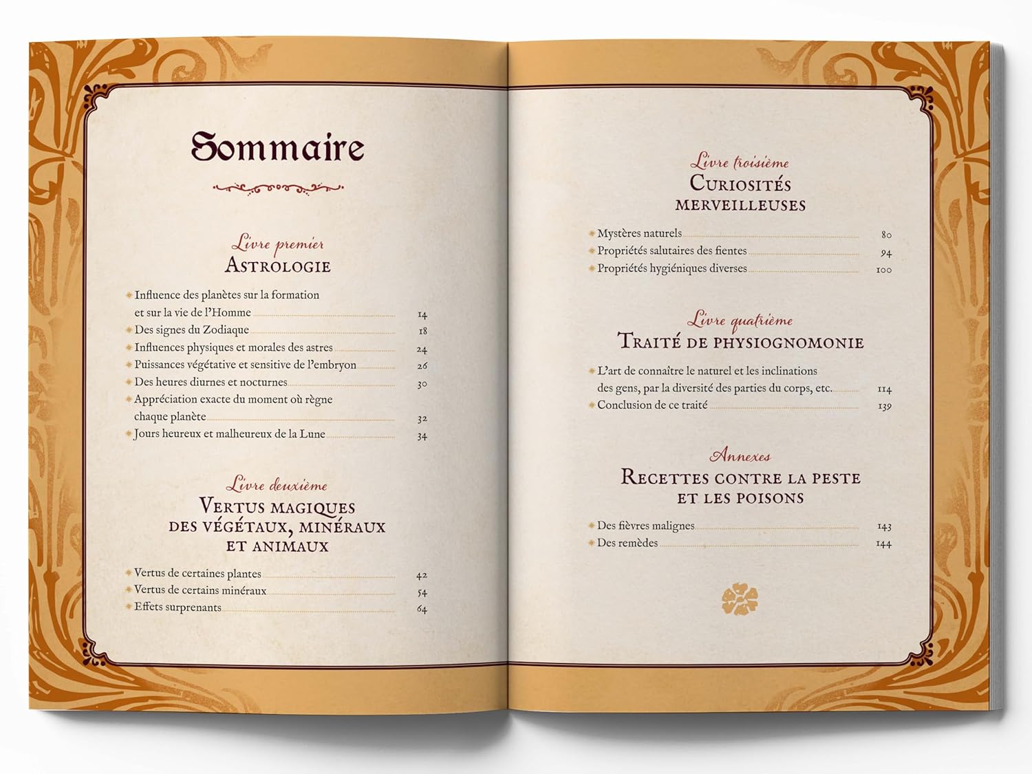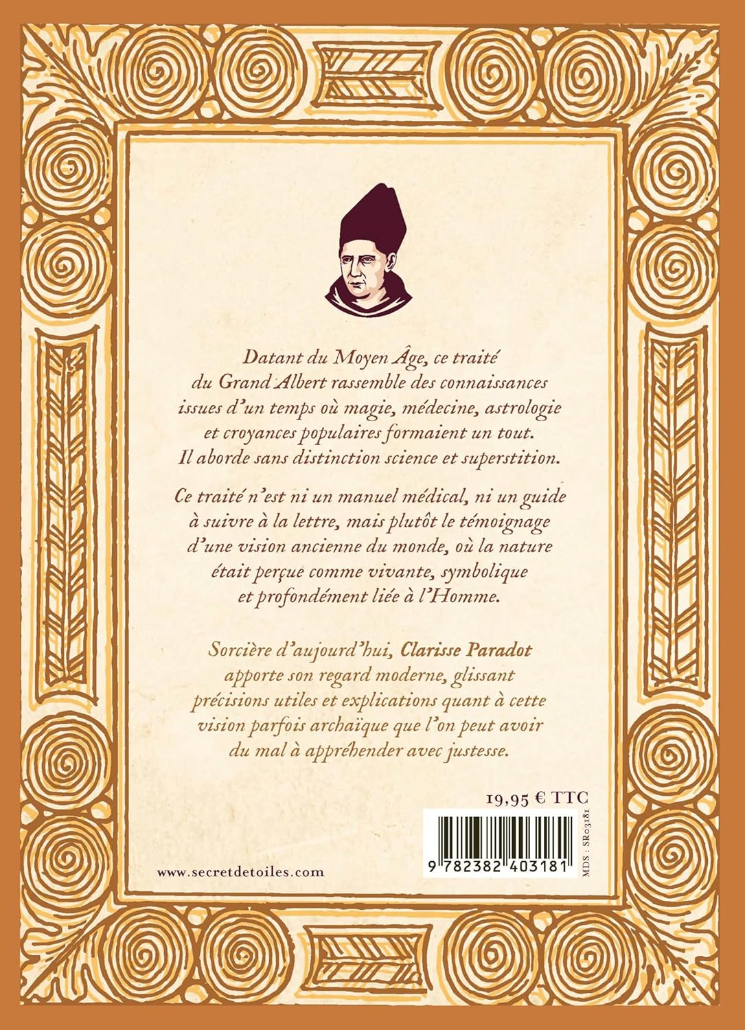 Datant du Moyen Âge, ce traité du Grand Albert rassemble des connaissances issues d’un temps où magie, médecine, astrologie et croyances populaires formaient un tout. Il aborde sans distinction science et superstition. Ce traité n’est ni un manuel médical, ni un guide à suivre à la lettre, mais plutôt le témoignage d’une vision ancienne du monde, où la nature était perçue comme vivante, symbolique et profondément liée à l’Homme.