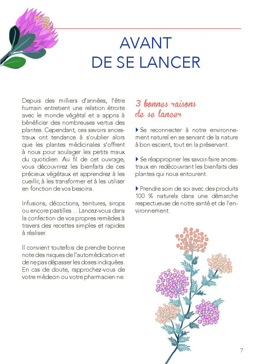 Soulagez les petits maux du quotidien avec des remèdes 100 % naturels ! Sirop pour adoucir en cas de toux sèche, inhalation pour migraines et maux de tête, tisane en cas de règles douloureuses, pastilles pour apaiser les maux de gorge… réappropriez-vous les savoir-faire ancestraux, en redécouvrant les bienfaits des plantes médicinales qui nous entourent.