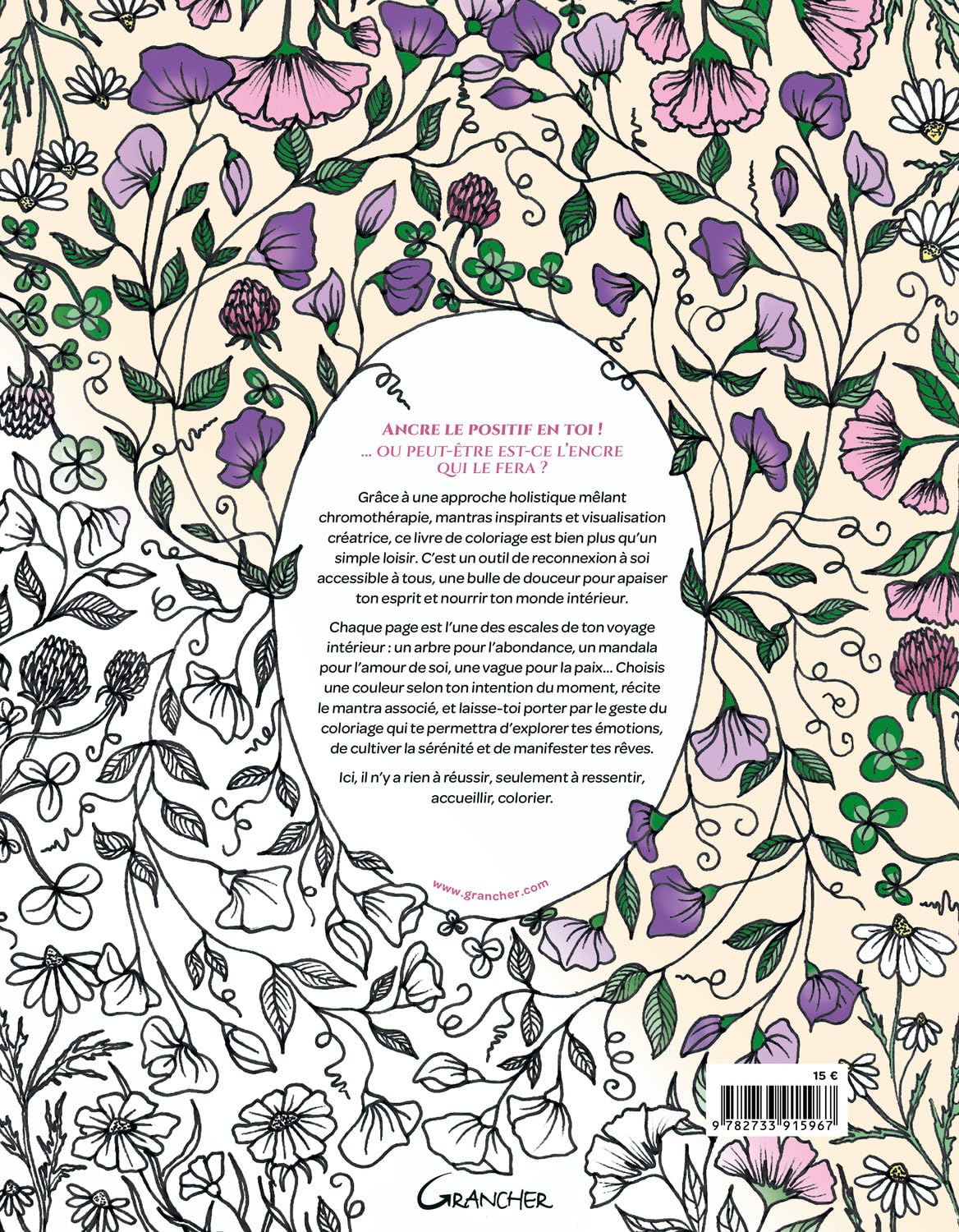 Chaque page est l’une des escales de ton voyage intérieur : un arbre pour l’abondance, un mandala pour l’amour de soi, une vague pour la paix… Choisis une couleur selon ton intention du moment, récite le mantra associé, et laisse-toi porter par le geste du coloriage qui te permettra d’explorer tes émotions, de cultiver la sérénité et de manifester tes rêves.