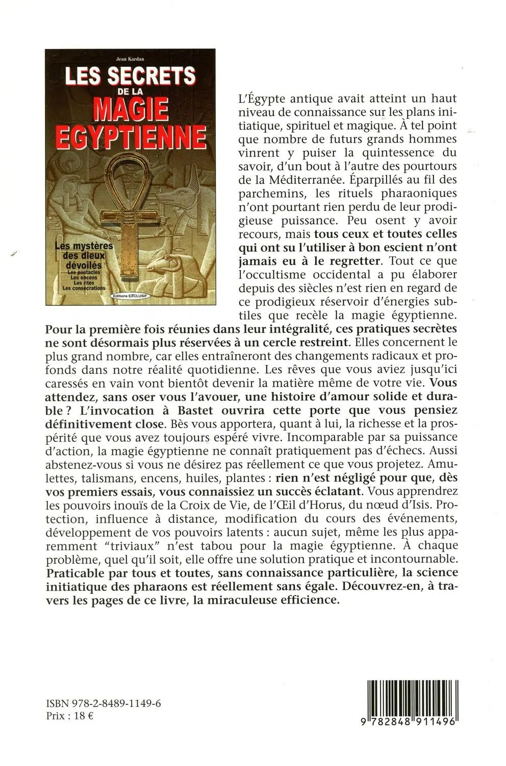 Pour la première fois réunies dans leur intégralité, ces pratiques secrètes ne sont désormais plus réservées à un cercle restreint. Elles concernent le plus grand nombre, car elles entraîneront des changements radicaux et profonds dans notre réalité quotidienne. Les rêves que vous aviez jusqu'ici caressés en vain vont bientôt devenir la matière même de votre vie. Vous attendez, sans oser vous l'avouer, une histoire d'amour solide et durable ? L'invocation à Bastet ouvrira cette porte que vous pensiez définitivement close. Bès vous apportera, quant à lui, la richesse et la prospérité que vous avez toujours espéré vivre.