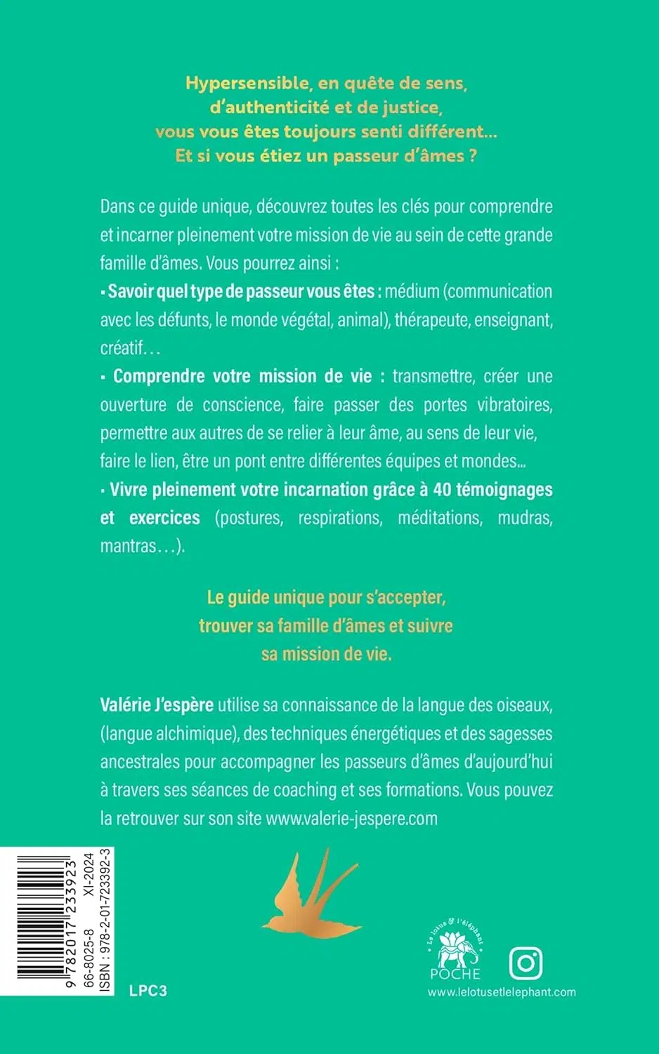 Dans ce guide unique, découvrez toutes les clés pour comprendre et incarner pleinement votre mission de vie au sein de cette grande famille d’âmes. Vous pourrez ainsi :• Savoir quel type de passeur vous êtes : médium (communication avec les défunts, le monde végétal, animal), thérapeute, enseignant, créatif…