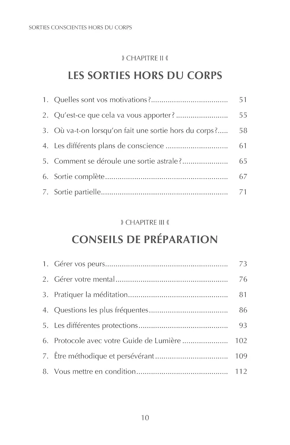 Grâce à ce manuel pratique, vous découvrirez différentes techniques de sorties conscientes hors du corps qui ont fait leurs preuves, comment gérer vos peurs et votre mental pour y parvenir, mais aussi comment obtenir des informations présentes dans l'astral et comment communiquer avec vos guides de lumière, avec des personnes décédées, ou avec d'autres âmes incarnées.