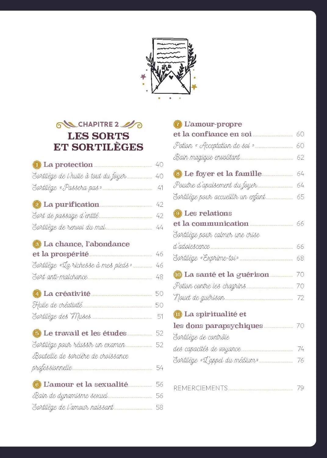 Sorts de protection ou de purification, sortilèges pour attirer chance, abondance et prospérité, rituels pour stimuler sa créativité ou pour guérir les chagrins… exercez votre magie pour mettre de la joie dans votre quotidien.