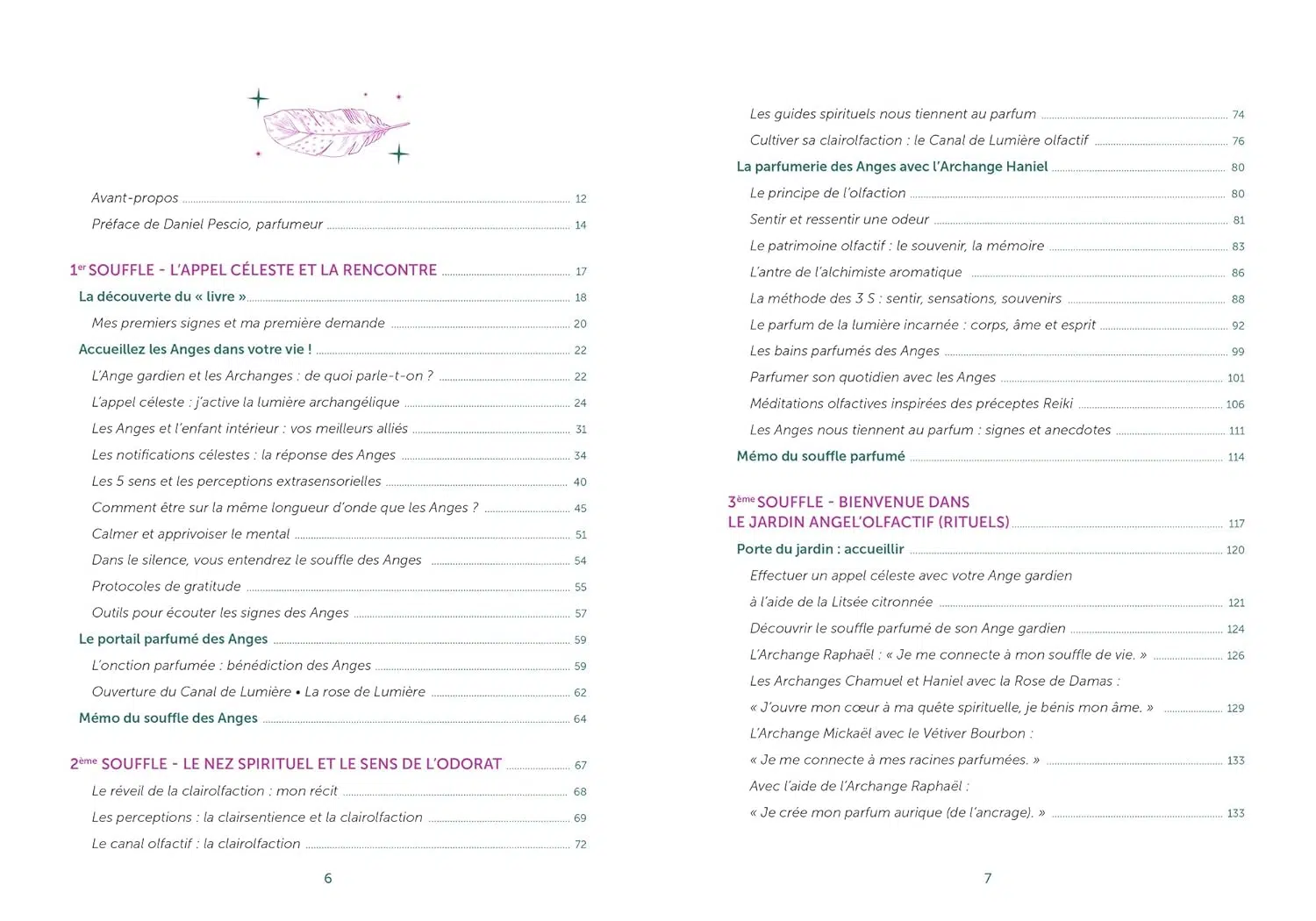 - 15 rituels, protocoles et méditations pour vous centrer et parvenir à établir un canal de communication : protocole de gratitude, méditation pour déterminer ses perceptions extrasensorielles ouvertes, méthode pour déterminer le message olfactif ou rituel pour créer des parfums auriques