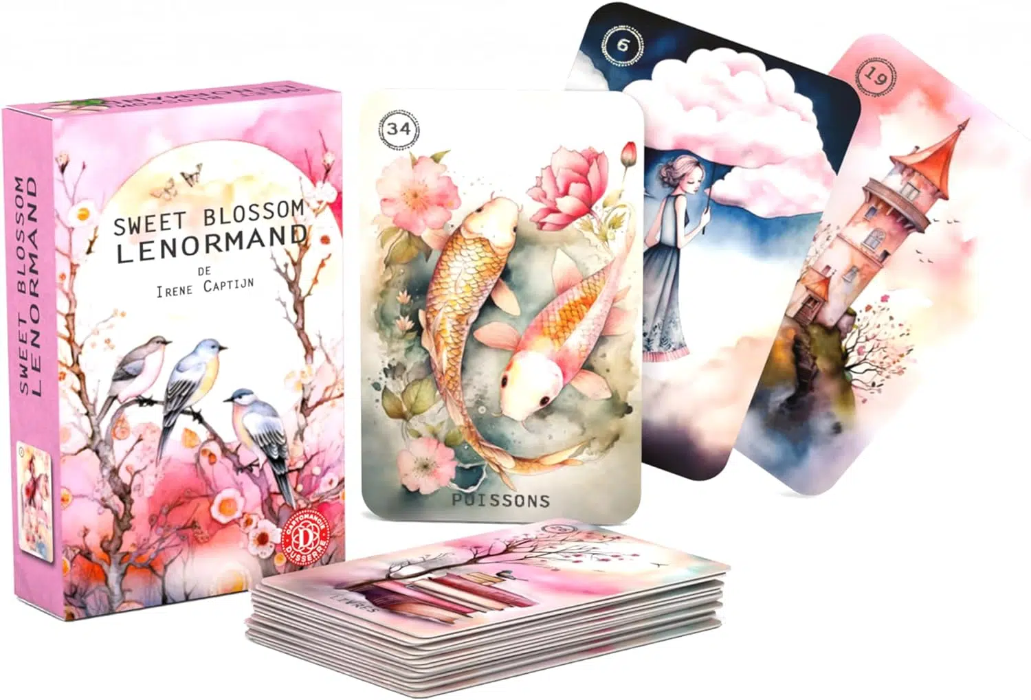 Sweet Blossom Lenormand, réé par l'artiste néerlandaise Irene Captijn, séduit par sa légèreté et la douceur de ses teintes. Les fleurs épanouies sur chaque carte évoquent la promesse du printemps, apportant espoir et optimisme face aux défis du quotidien.