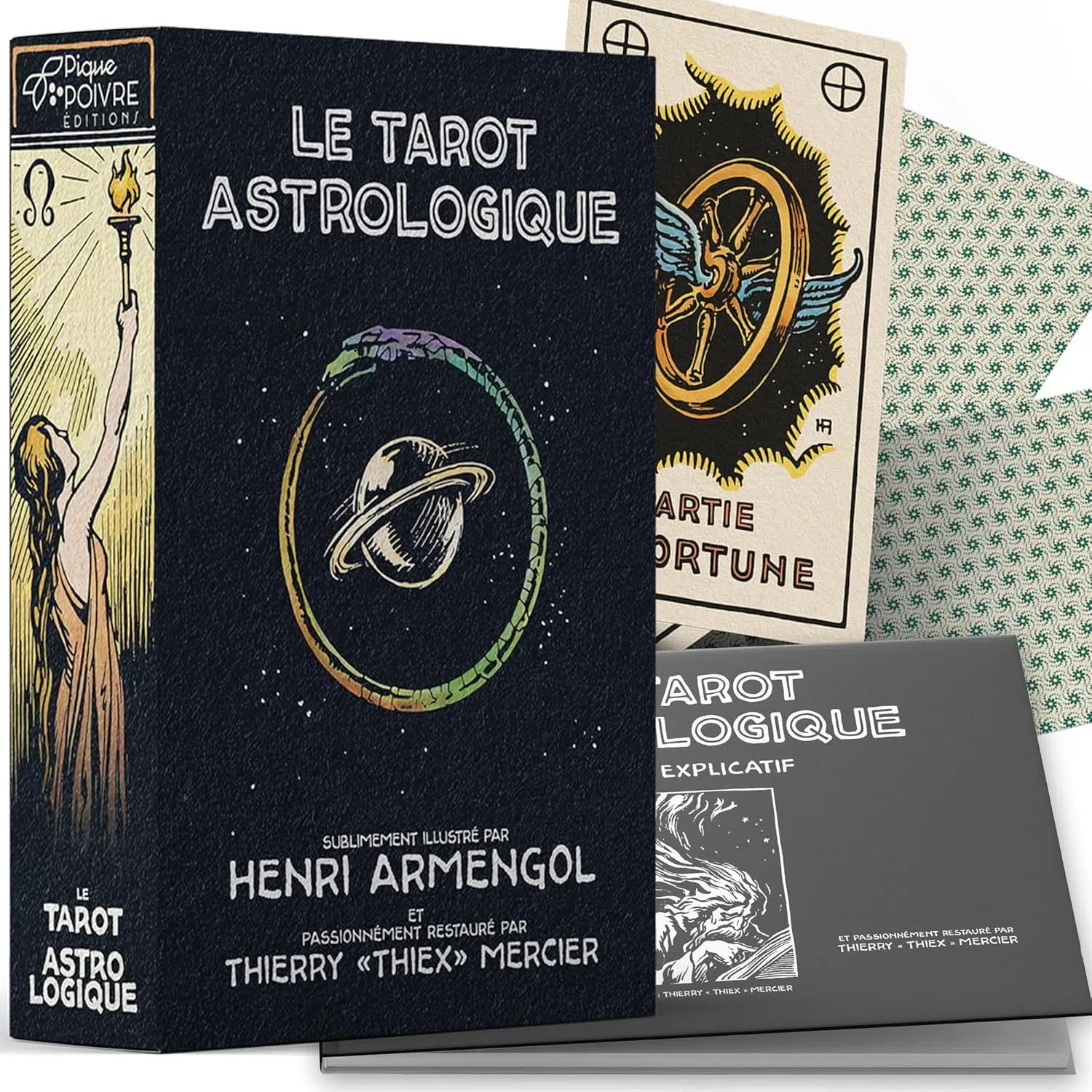 Découvrez notre coffret exceptionnel, le Tarot Astrologique sublimement illustré par Henri Armengol et passionnément restauré par Thierry Mercier. Henri Armengol, graveur du siècle dernier, a créé 48 illustrations de tarot d'une beauté inégalée. Cependant, le temps a terni leur éclat. Heureusement, Thierry Mercier a entrepris une restauration méticuleuse pour redonner à ces œuvres leur splendeur originale.