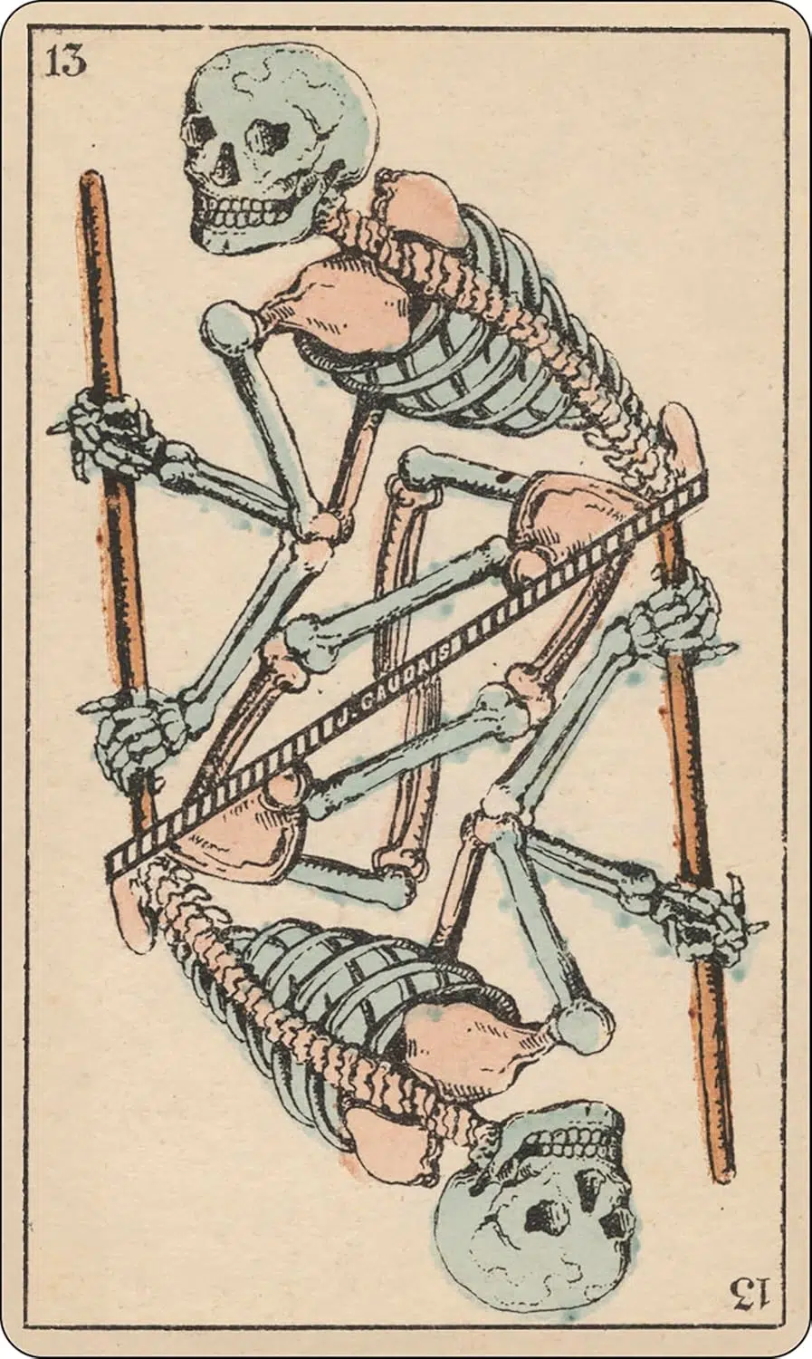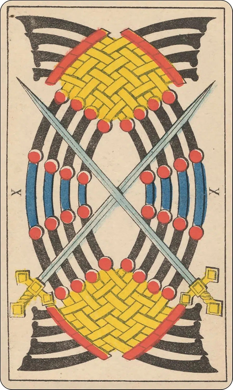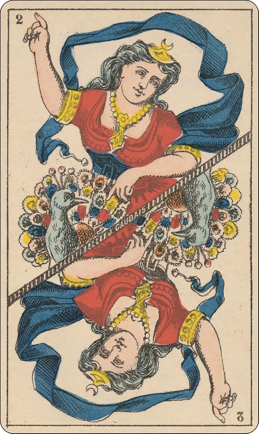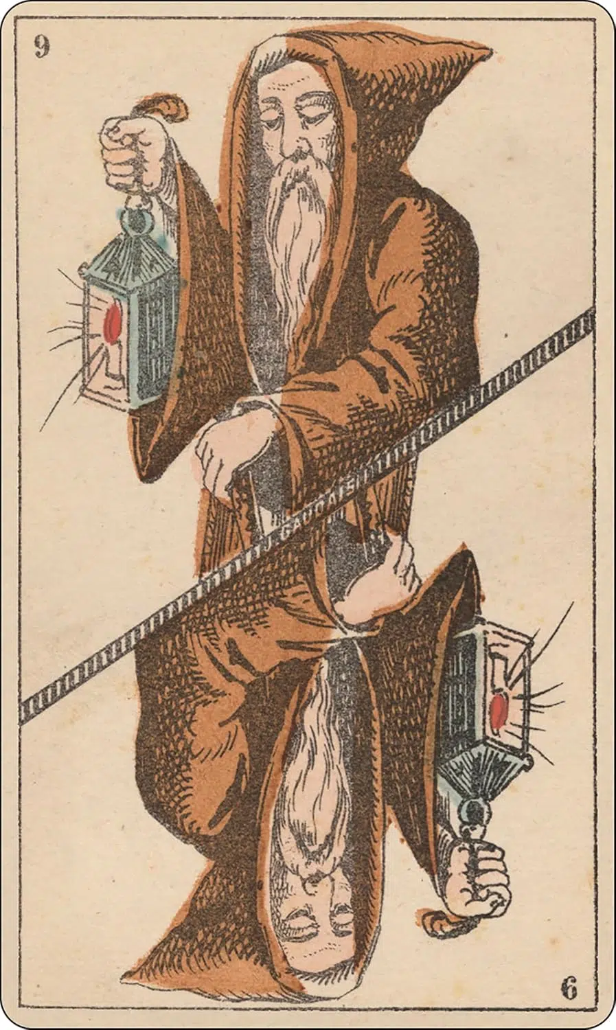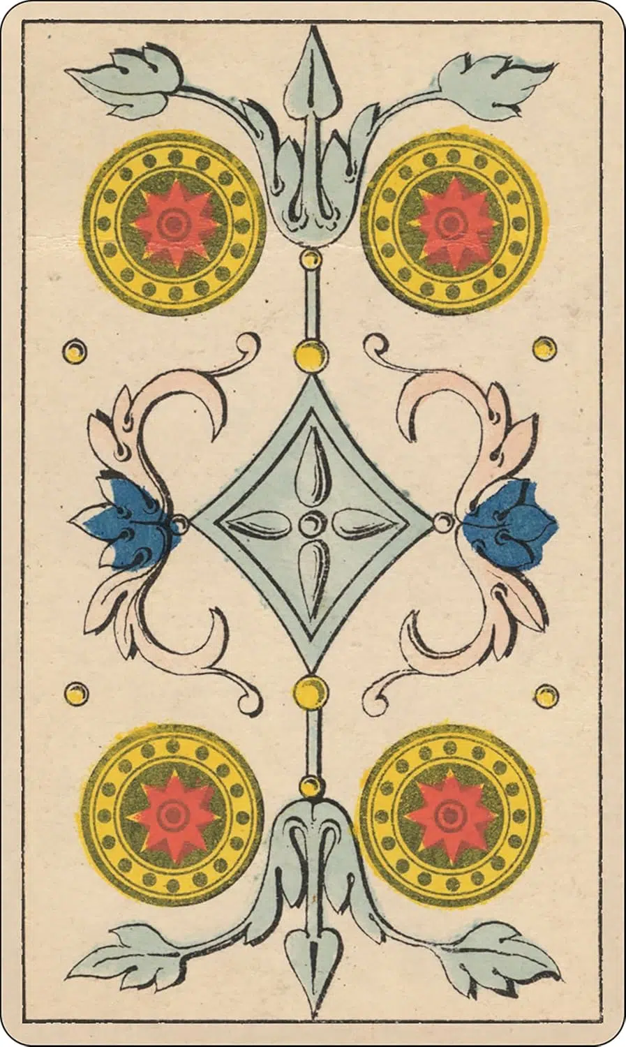 Publiés pour la première fois dans la seconde moitié du XIXe siècle, Le Tarot de Besançon présente une caractéristique esthétique particulière : un jeu original de symétries créé par une corde diagonale qui reflète les figures représentées sur les cartes.