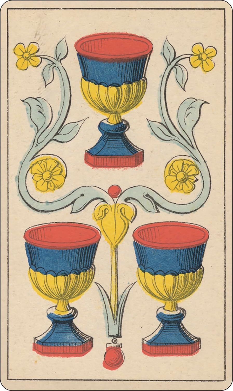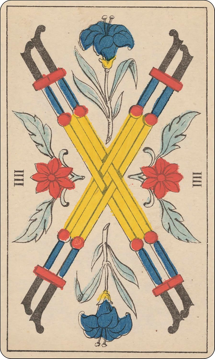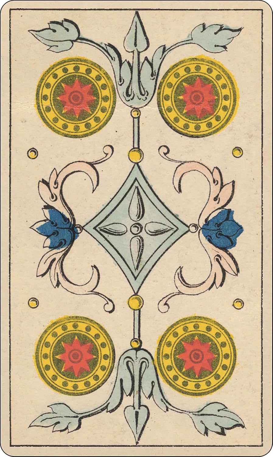 Publiés pour la première fois dans la seconde moitié du XIXe siècle, Le Tarot de Besançon présente une caractéristique esthétique particulière : un jeu original de symétries créé par une corde diagonale qui reflète les figures représentées sur les cartes.