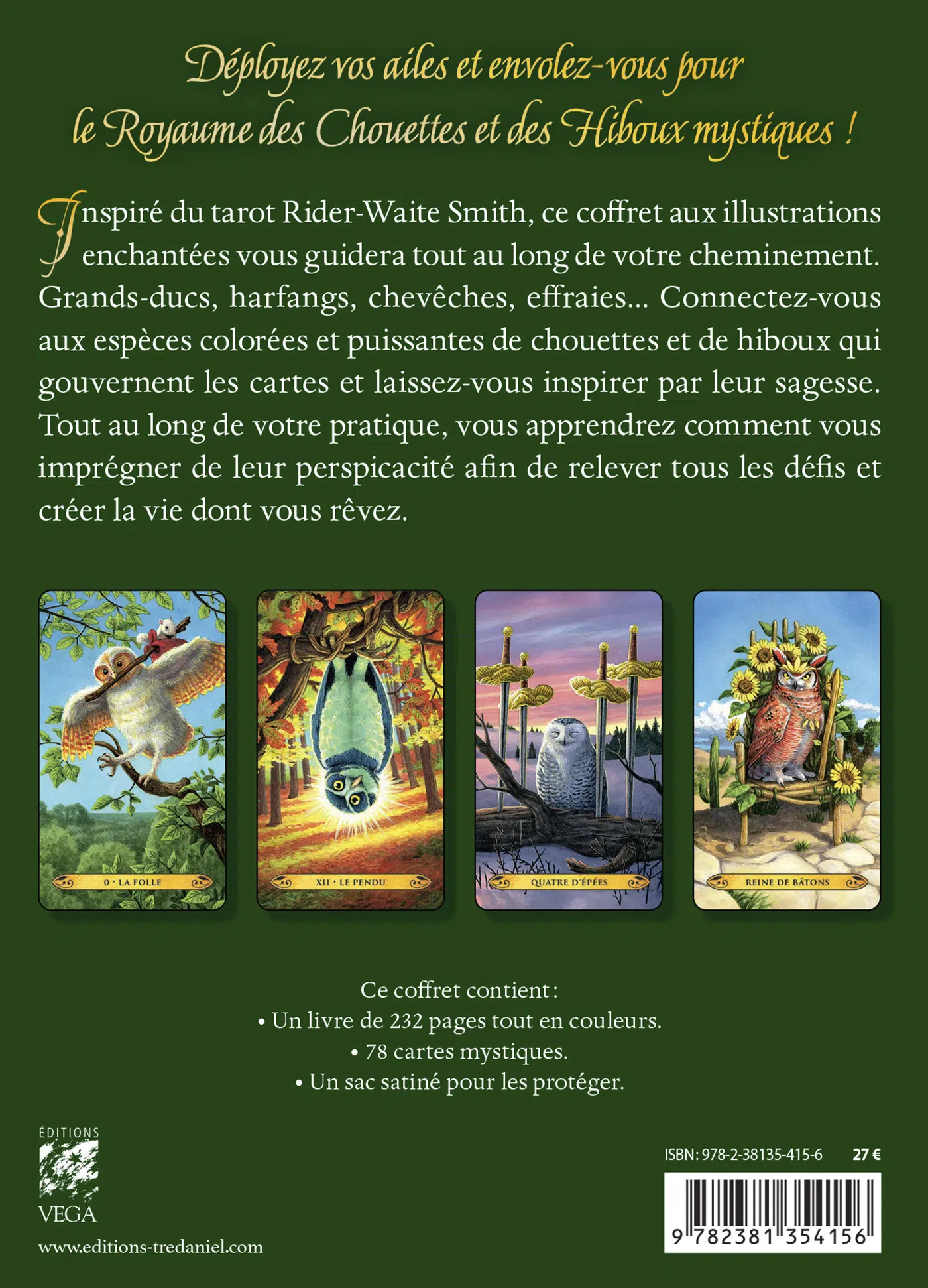 Inspiré du tarot Rider-Waite Smith, ce coffret aux illustrations enchantées vous guidera tout au long de votre cheminement. Grands-ducs, harfangs, chevêches, effraies... Connectez-vous aux espèces colorées et puissantes de chouettes et de hiboux qui gouvernent les cartes et laissez-vous inspirer par leur sagesse.