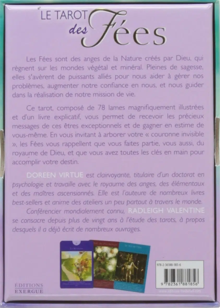 Ce tarot, composé de 78 lames magnifiquement illustrées et d'un livre explicatif, vous permet de recevoir les précieux messages de ces êtres exceptionnels et de gagner en estime de vous-même. En vous invitant à arborer votre « couronne invisible », les Fées vous rappellent que vous faites partie, vous aussi, du royaume de Dieu, et que vous avez toutes les clés en main pour accomplir votre destin.