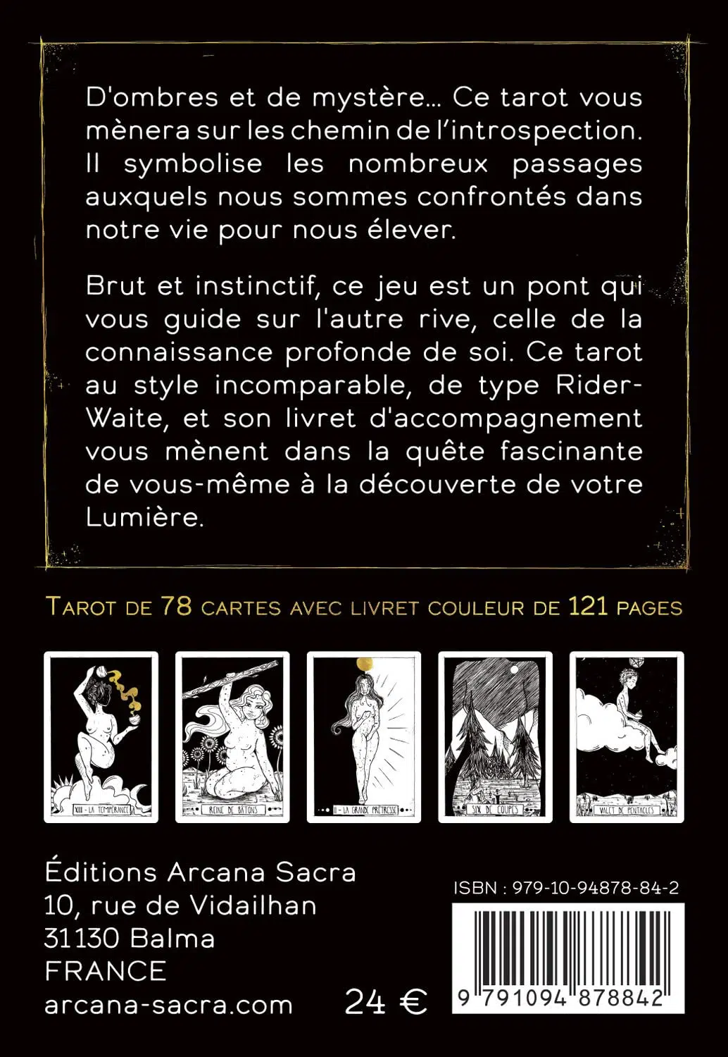 Brut, enracinant et instinctif, ce jeu est un pont qui vous guide sur l’autre rive, celle de la connaissance profonde de soi. Ce tarot, de type Rider-Waite, au style incomparable et son livret d’accompagnement vous mènent dans la quête fascinante de vous-même à la découverte de votre lumière.