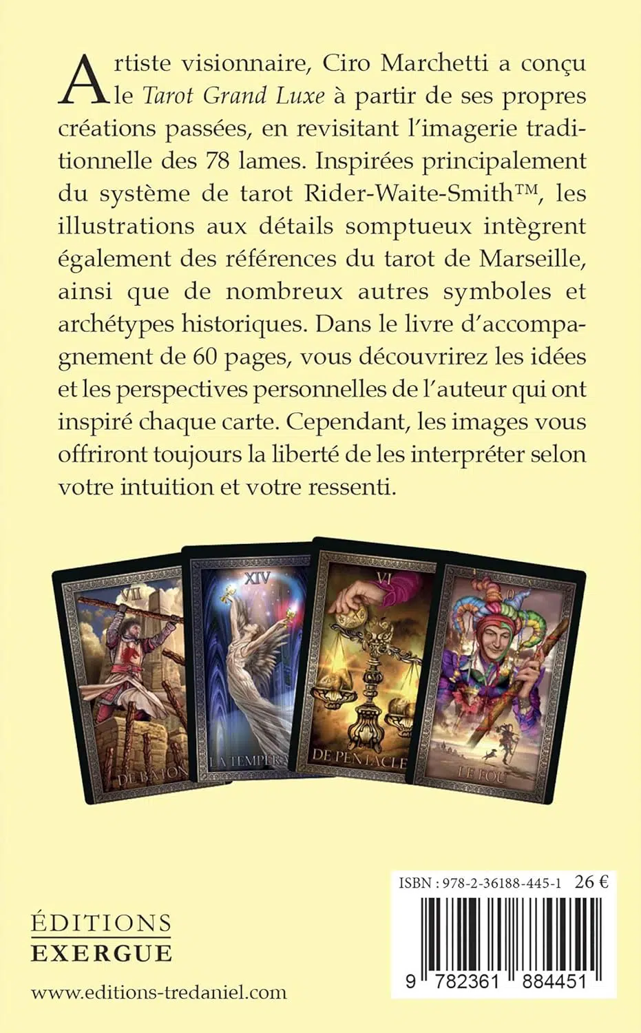 Artiste visionnaire, Ciro Marchetti a conçu le Tarot Grand Luxe à partir de ses propres créations passées, en revisitant l'imagerie traditionnelle des 78 lames.