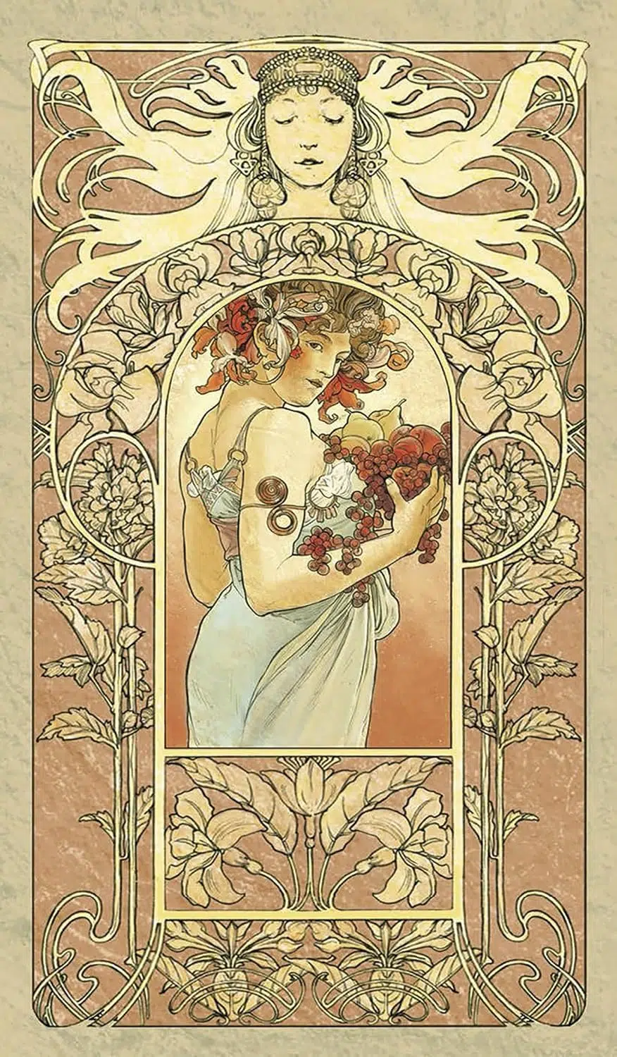 Un superbe tarot inspiré des plus belles illustrations d'Alphonse Mucha, figure de proue de style artistique de l'Art Nouveau.Alphonse Mucha est connu pour être l'une des figures les plus importantes du mouvement artistique de l'Art Nouveau, ayant consacré toute sa vie à cette philosophie artistique, avant même qu'elle ne devienne populaire. Ce tarot nous transporte dans son univers plein de grâce et de poésie, propre à cette époque du début du XXe siècle.