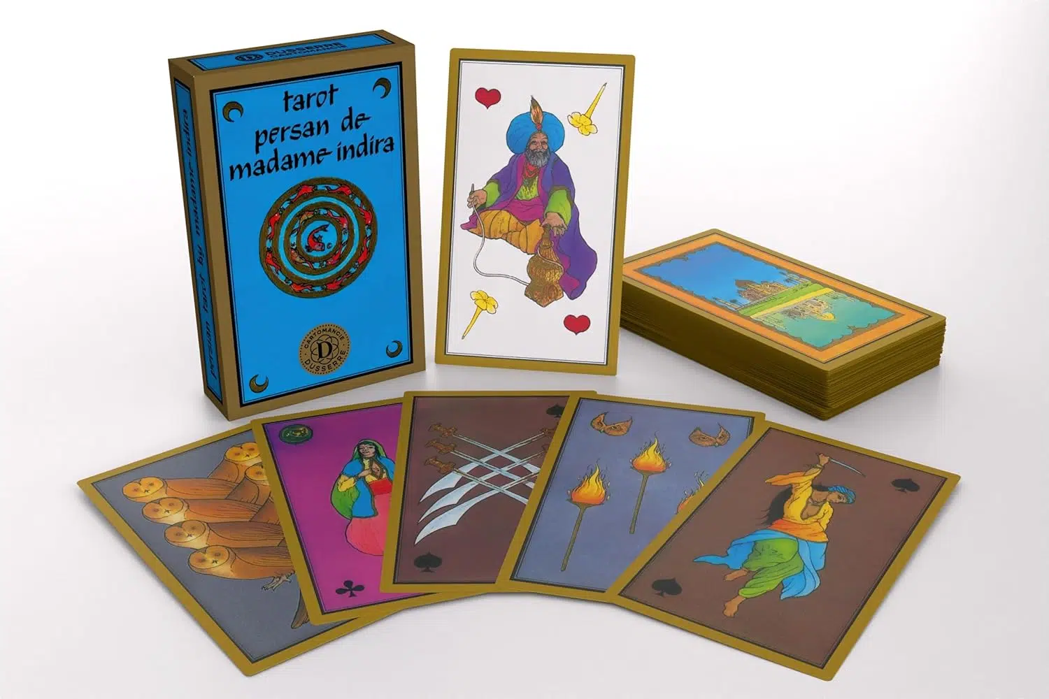 Avec ce célèbre jeu créé en 1980, inspiré du conte des mille et une nuits, retrouvez l’univers des sultanes et des sultans, des palais aux airs de Taj Mahal, des animaux exotiques… Des cartes franches et tranchées, aux illustrations évocatrice, telles que la rencontre, le trésor, le bateau, la sorcière… Mais aussi des cartes inspirées de la cartomancie classique (cœurs, trèfles, carreaux et piques), avec des reines, rois et cavaliers aux caractères distincts. Redoutable pour les prédictions, ce jeu est un grand classique original et sérieux.