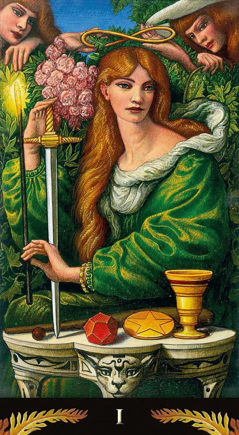 Les couleurs vives et l'imagerie médiévale du mouvement préraphaélite nous offrent un superbe tarot riche en mystère et en romantisme.
