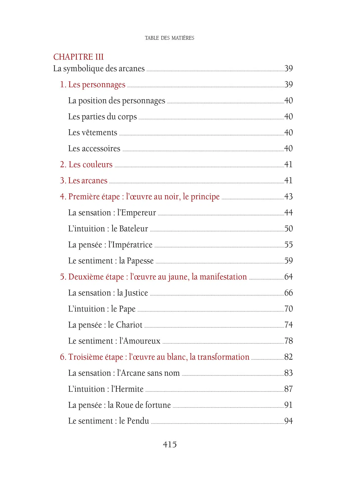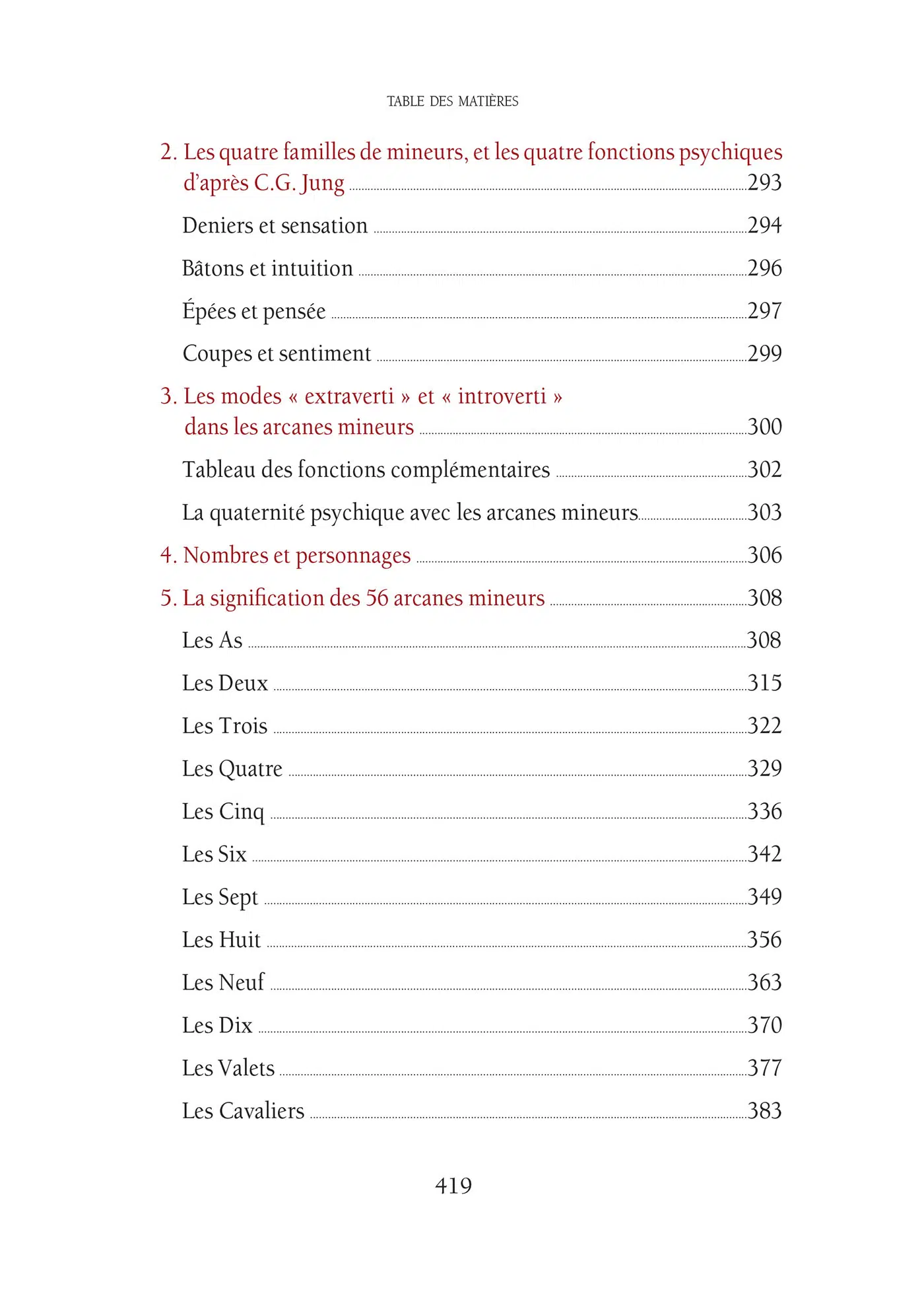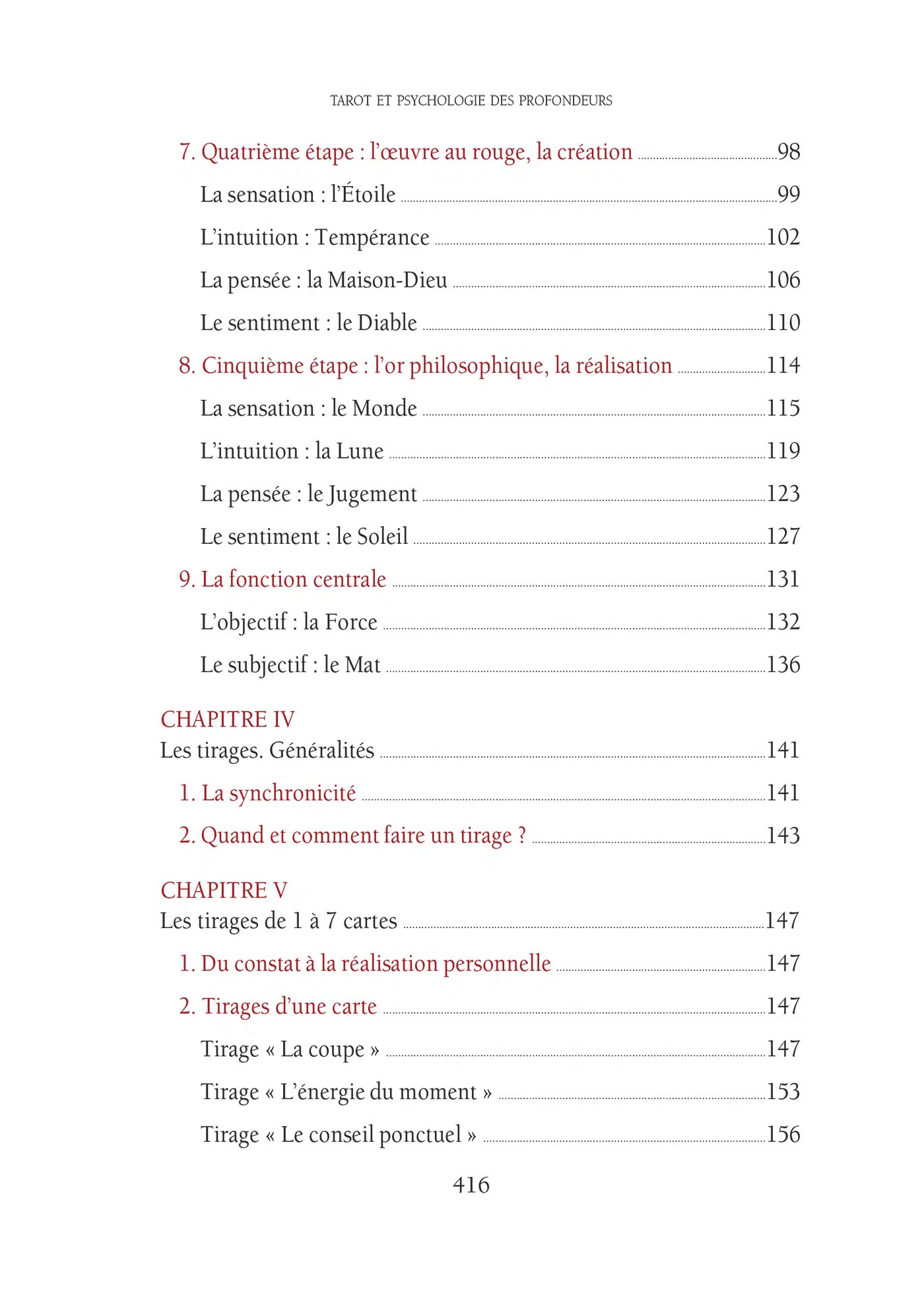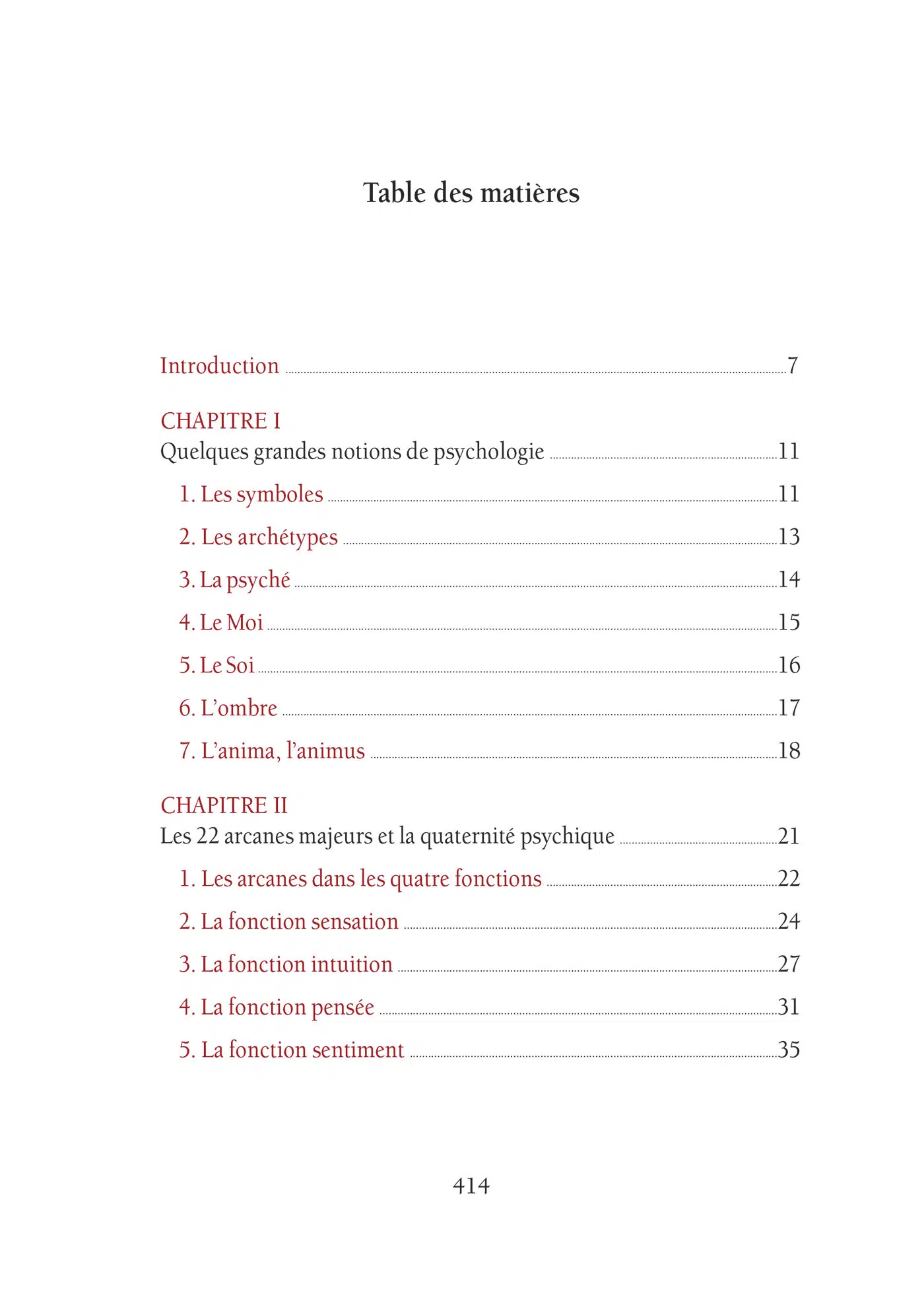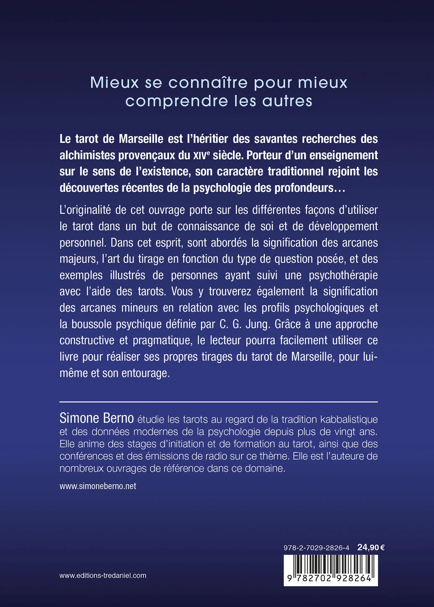 L'originalité de cet ouvrage porte sur les différentes façons d'utiliser le tarot dans un but de connaissance de soi et de développement personnel. Dans cet esprit, sont abordés la signification des arcanes majeurs, l'art du tirage en fonction du type de question posée, et des exemples illustrés de personnes ayant suivi une psychothérapie avec l'aide des tarots. Vous y trouverez également la signification des arcanes mineurs en relation avec les profils psychologiques et la boussole psychique définie par C. G. Jung.