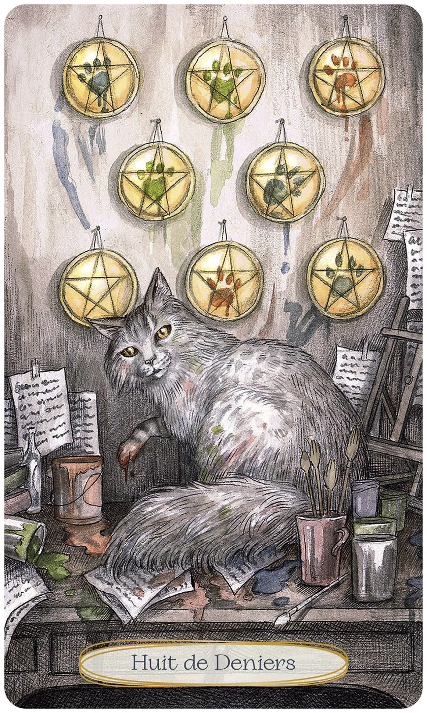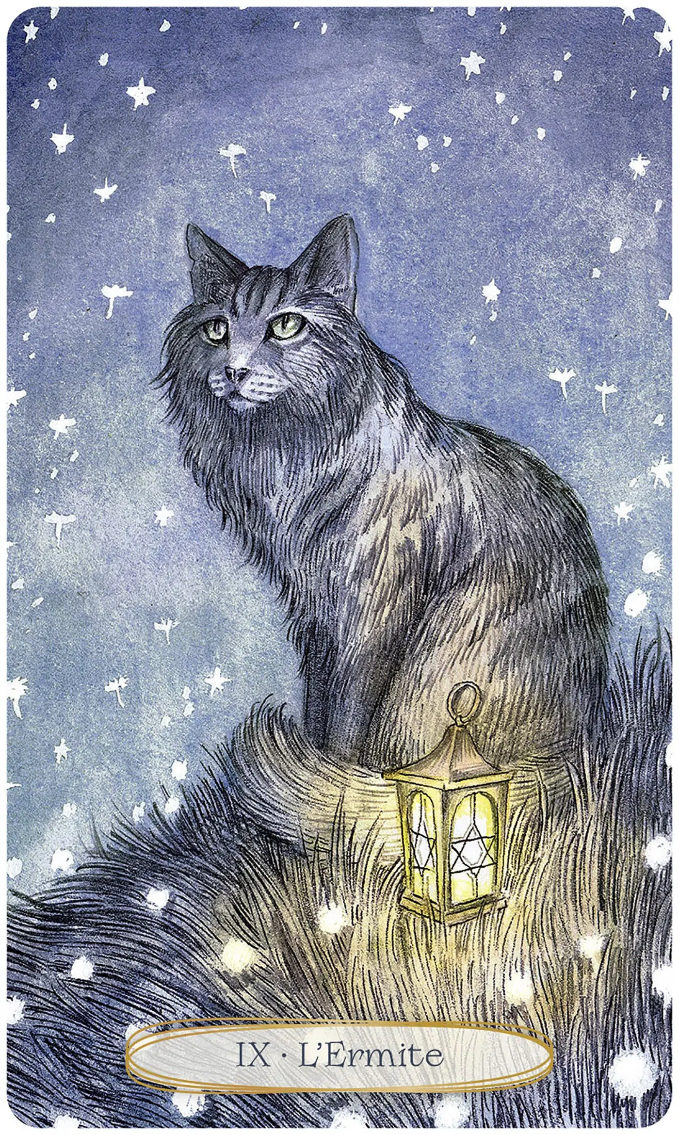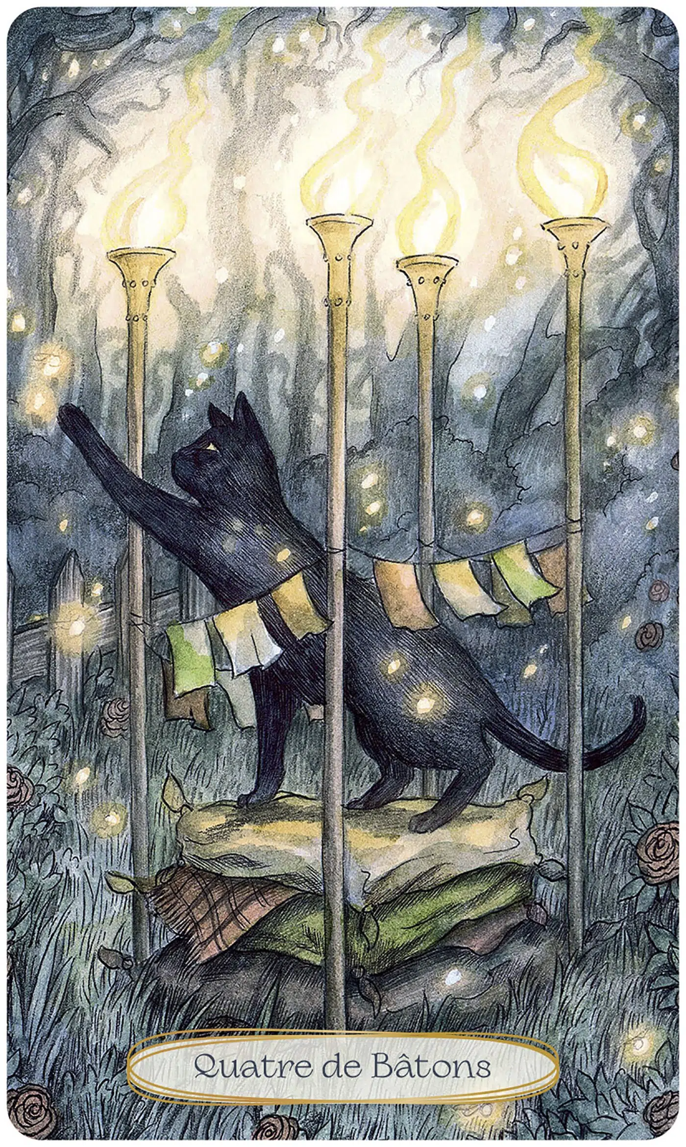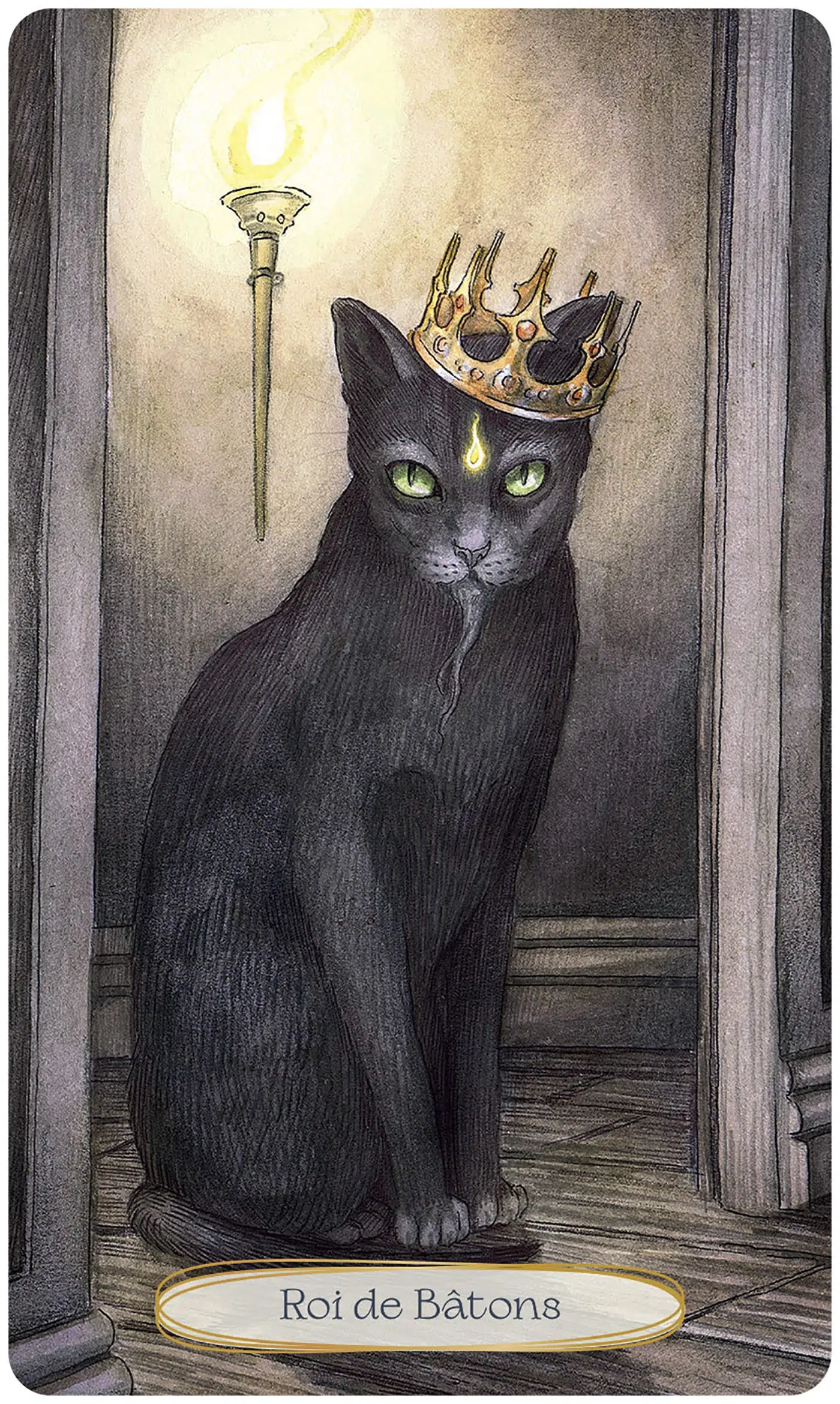 Retrouvez votre passion du jeu, votre sens de l'aventure et votre aptitude à aimer grâce aux félins messagers de ce tarot ludique et brillant, réalisé d'après le tarot Rider-Waite Smith.