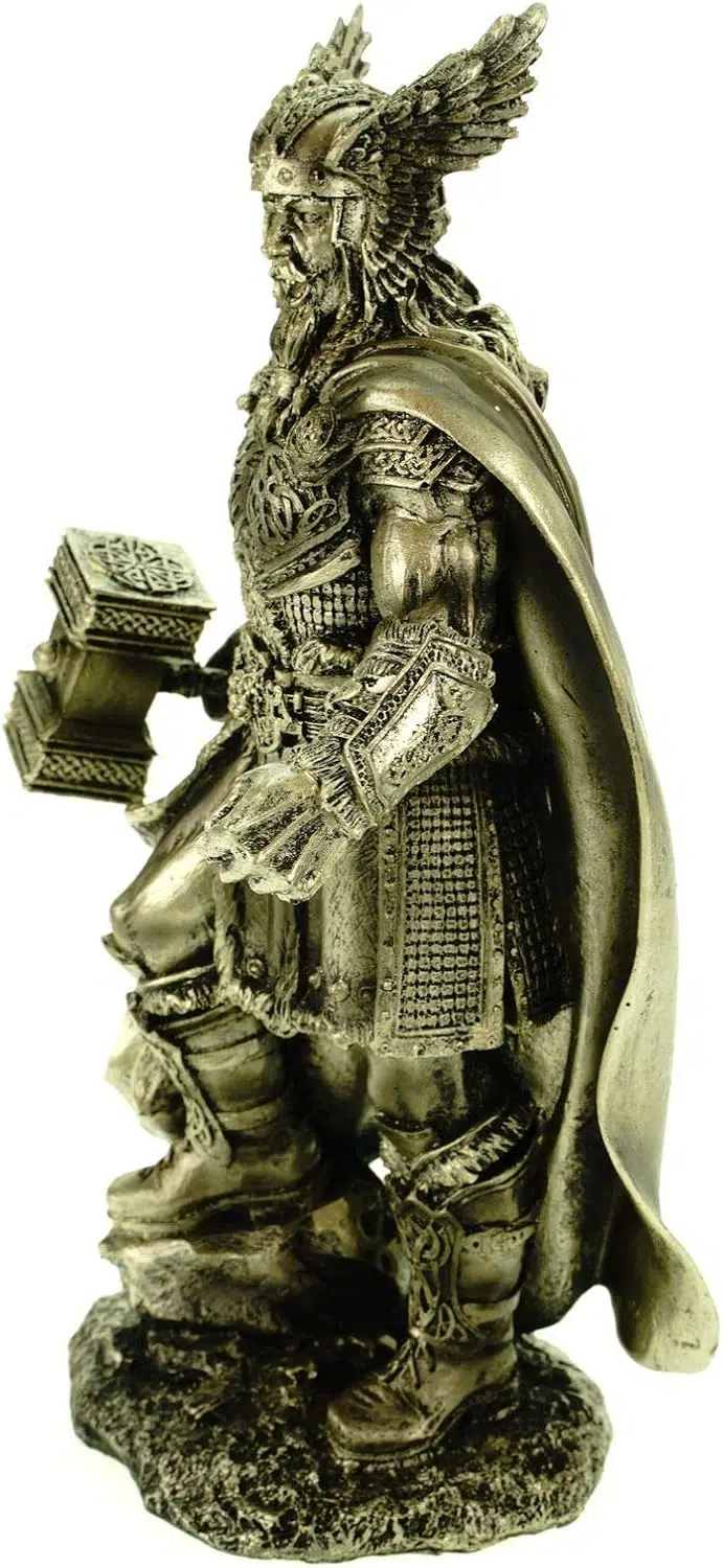 Thor, aussi appelé Donar, est le fils d'Odin et commu comme dieu nordique du tonnerre et protecteur des hommes.