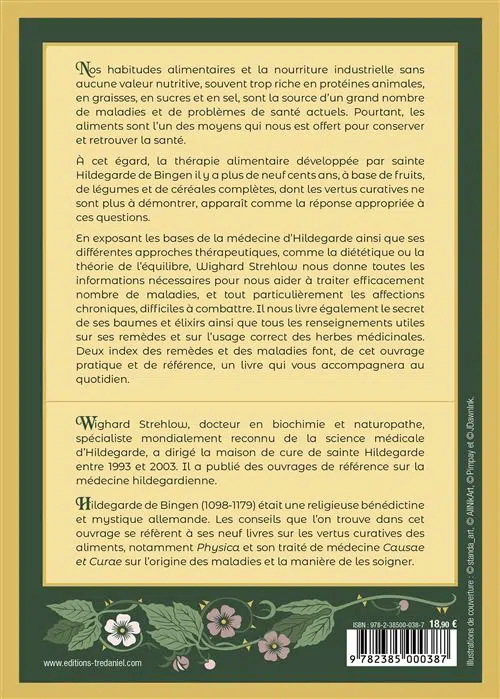 En exposant les bases de la médecine d'Hildegarde ainsi que ses différentes approches thérapeutiques, comme la diététique ou la théorie de l'équilibre, Wighard Strehlow nous donne toutes les informations nécessaires pour nous aider à traiter efficacement nombre de maladies, et tout particulièrement les affections chroniques, difficiles à combattre. Il nous livre également le secret de ses baumes et élixirs ainsi que tous les renseignements utiles sur ses remèdes et sur l'usage correct des herbes médicinales.