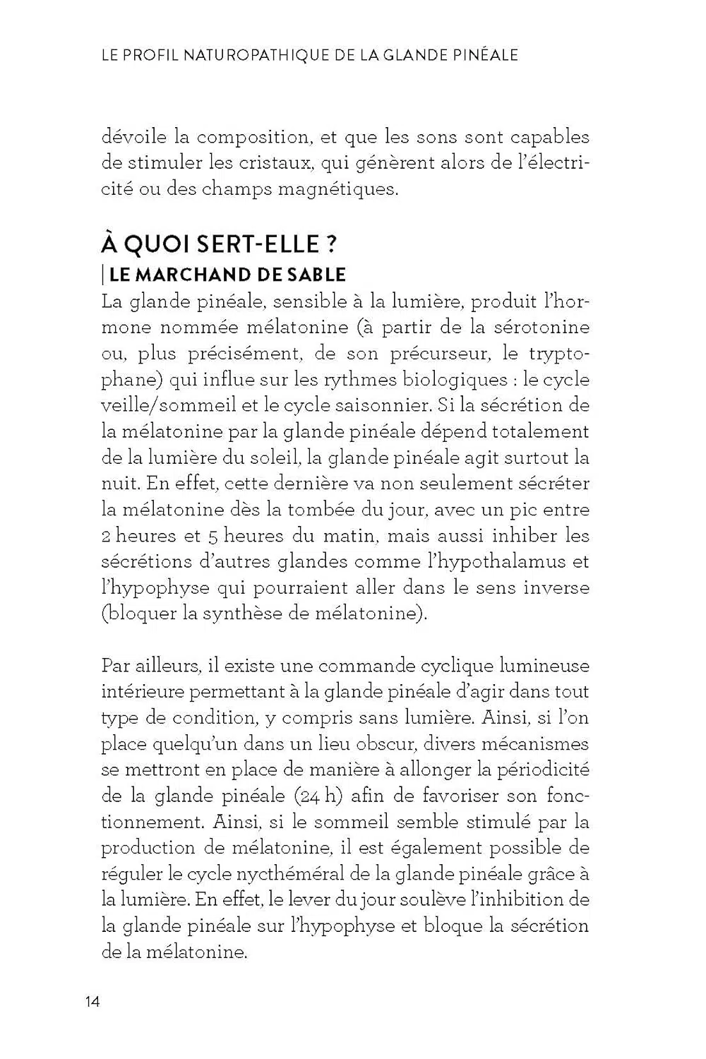 Depuis quelques décennies, la glande pinéale fait beaucoup parler d’elle tout en restant auréolée de mystère. Siège de multiples activités métaboliques déterminant l’heureux fonctionnement de l’organisme, elle porte également de nombreuses valeurs énergétiques et hautement symboliques. Centre de l’intuition, elle représente notre source d’inspiration tout comme notre bouton de connexion à la Source, au grand Tout.