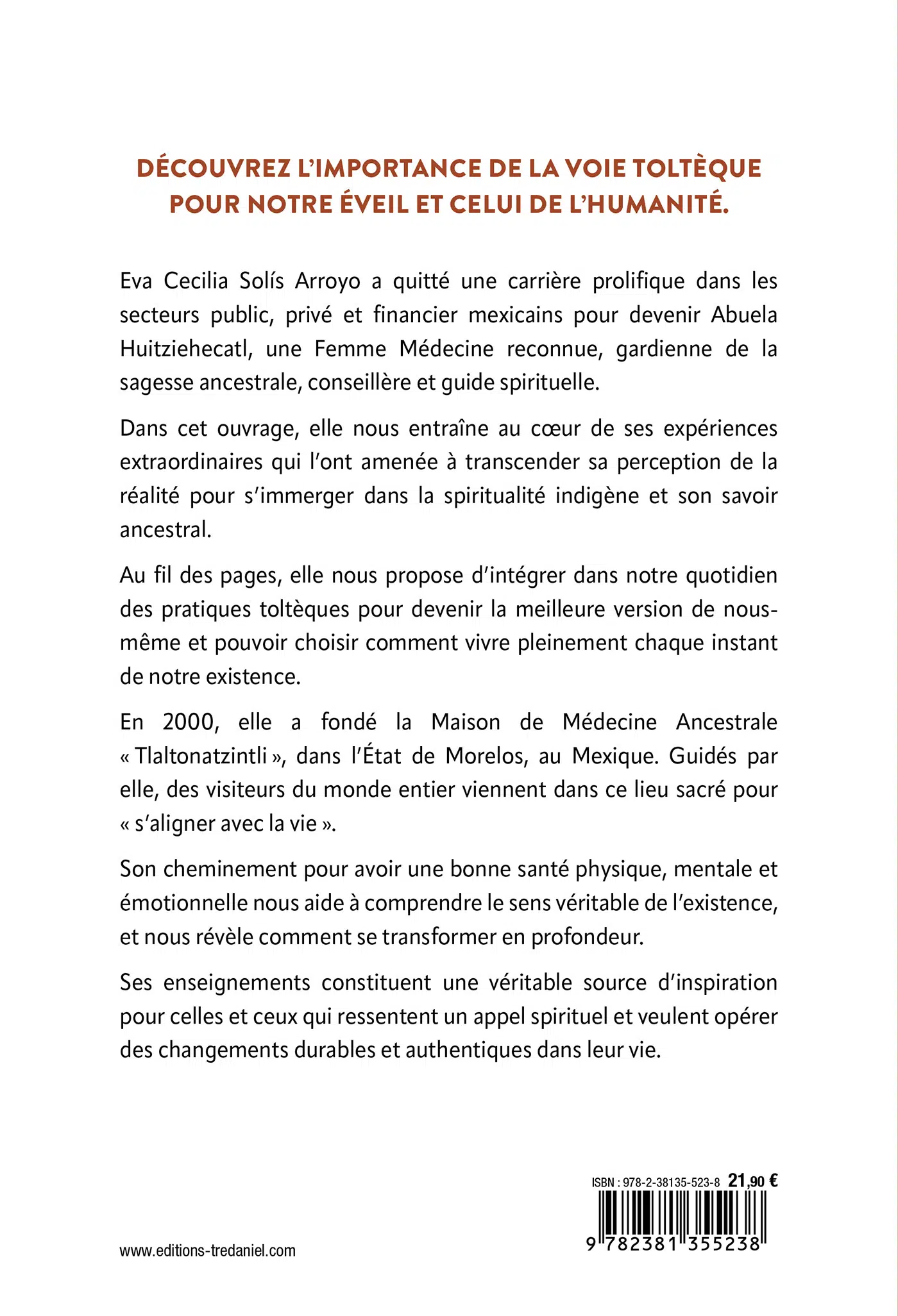 Au fil des pages, elle nous propose d’intégrer dans notre quotidien des pratiques toltèques pour devenir la meilleure version de nous- mêmes et pouvoir choisir de vivre pleinement chaque instant de notre existence.
