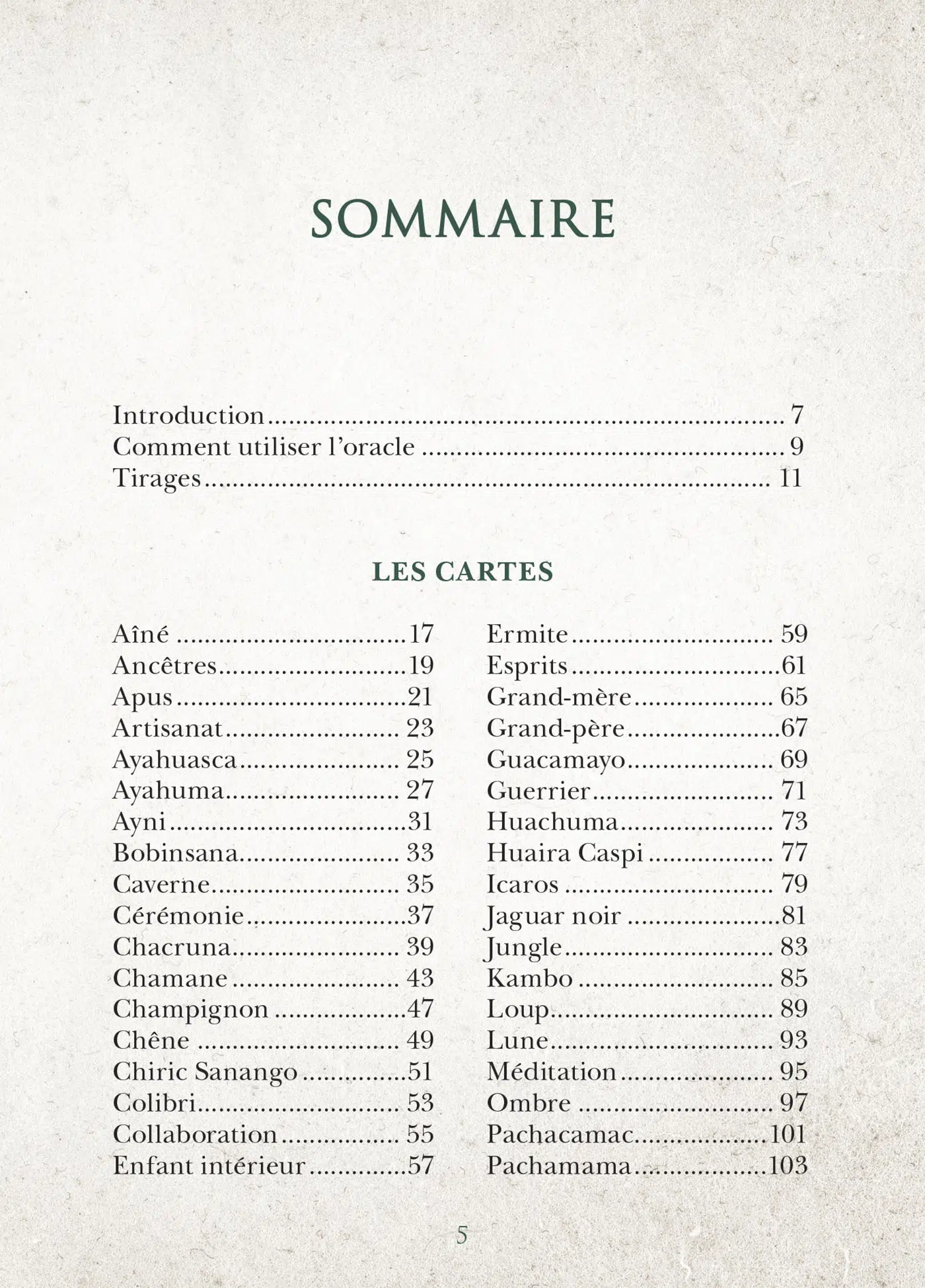 Plongez dans un univers magique, puissant, mystérieux et visionnaire. Retrouvez les traditions, les esprits, les animaux et les plantes maîtresses les plus emblématiques de la culture chamanique. Grâce à cet oracle, vous pourrez invoquer leur bienveillance, leur pouvoir de guérison et leurs enseignements pour accompagner votre quotidien.