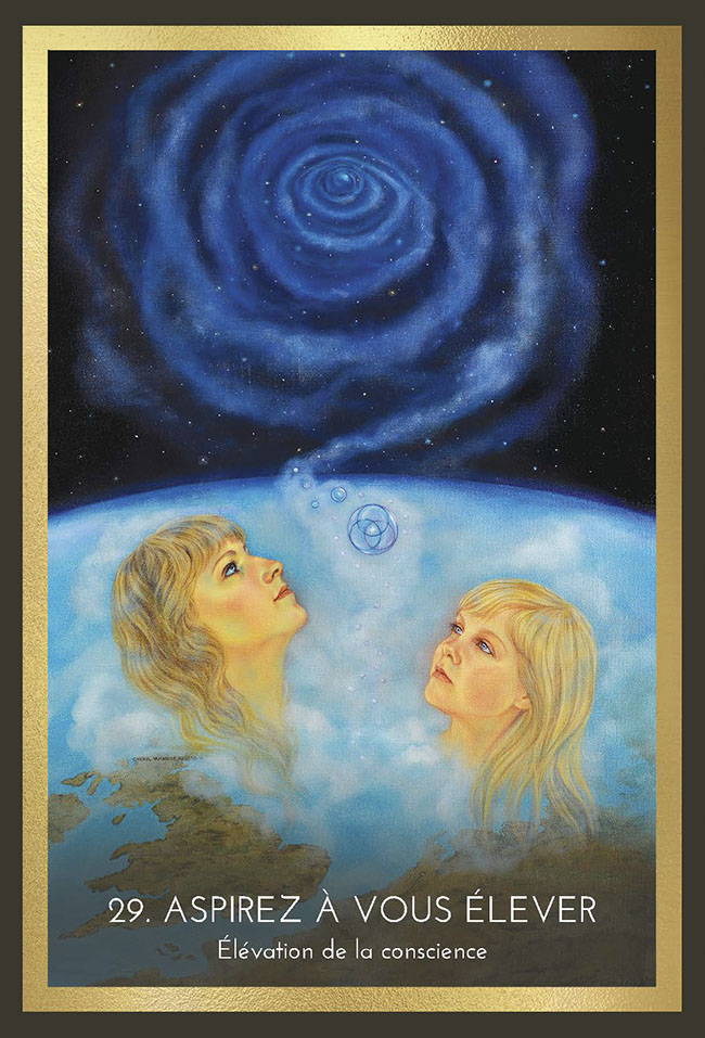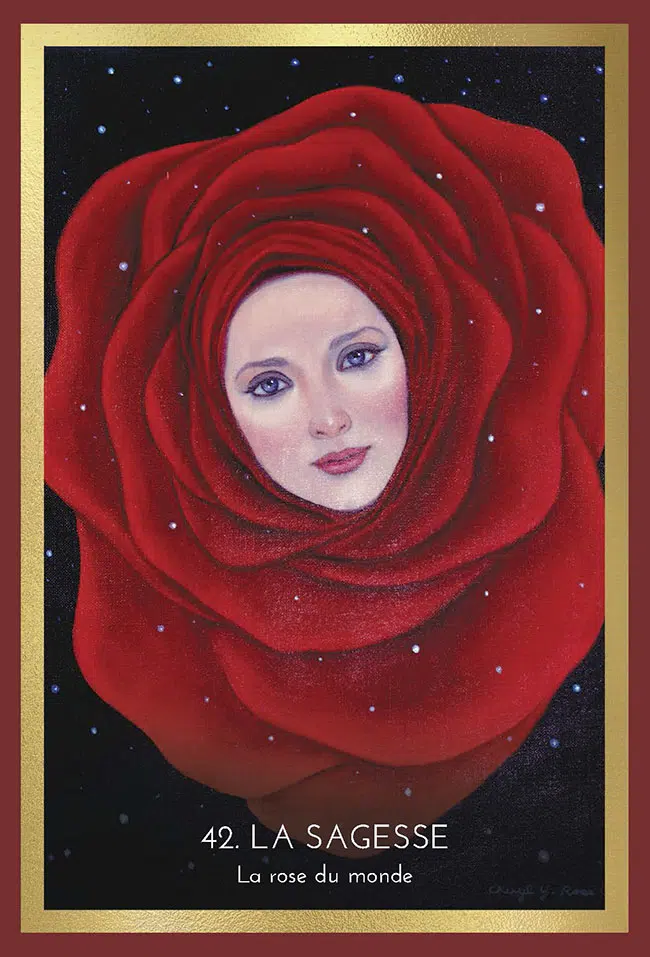 Cheryl Yambrach Rose réalise ses portraits visionnaires en commençant par peindre les yeux de ses sujets. À partir de ce tracé, elle travaille vers l'extérieur, pour créer des représentations intimes d'êtres divins et mythiques à travers un vortex de couleurs et d'énergie. Ses tableaux pourraient être décrits comme des portails qui nous conduisent directement vers des états profonds et éclairants, nous connectant aux mentors, aux messagers et à la magie dont le monde a tant besoin. Utilisez cet oracle comme une passerelle pour relier les mondes, approfondir vos connexions, et éveiller votre âme à une vibration plus élevée.